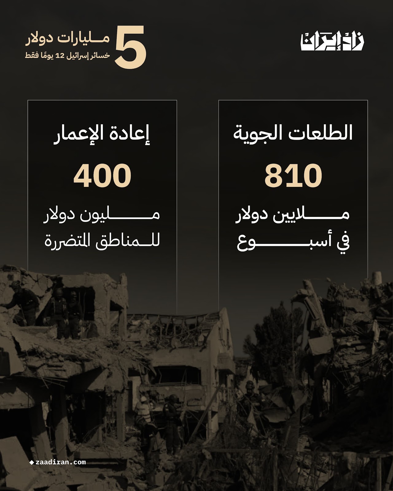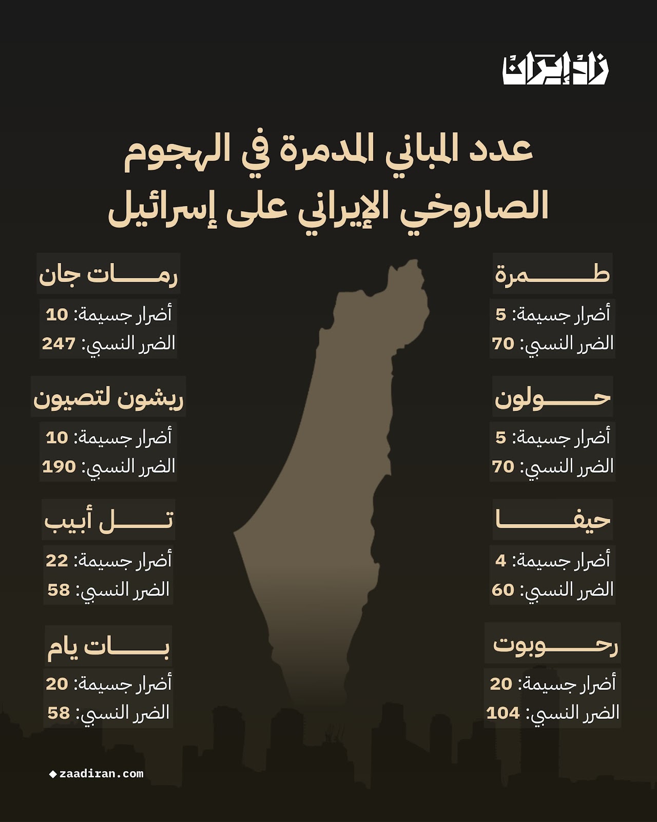 بالأرقام: فاتورة حرب الـ 12 يوم رعب على إسرائيل.. “زاد إيران” تكشف قصص الدمار والنزوح تحت وابل الصواريخ الإيرانية (خاص)