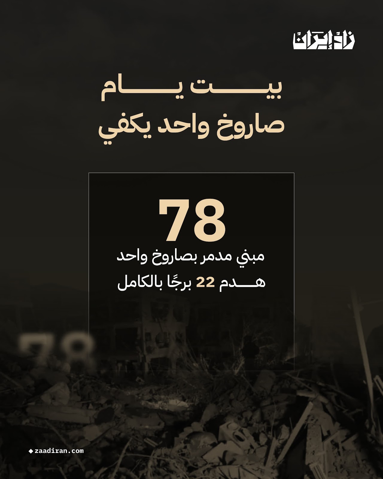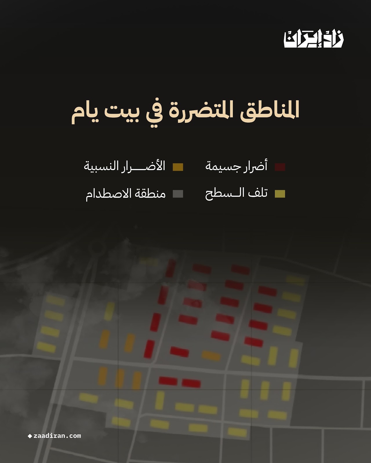 في بيت يام، منطقة أخرى على مشارف تل أبيب، كان صاروخ واحد من الحرس الثوري الإيراني كافيًا لتدمير 78 مبنى، بما في ذلك 22 برجًا سكنيًا اضطرت السلطات إلى هدمها بالكامل.