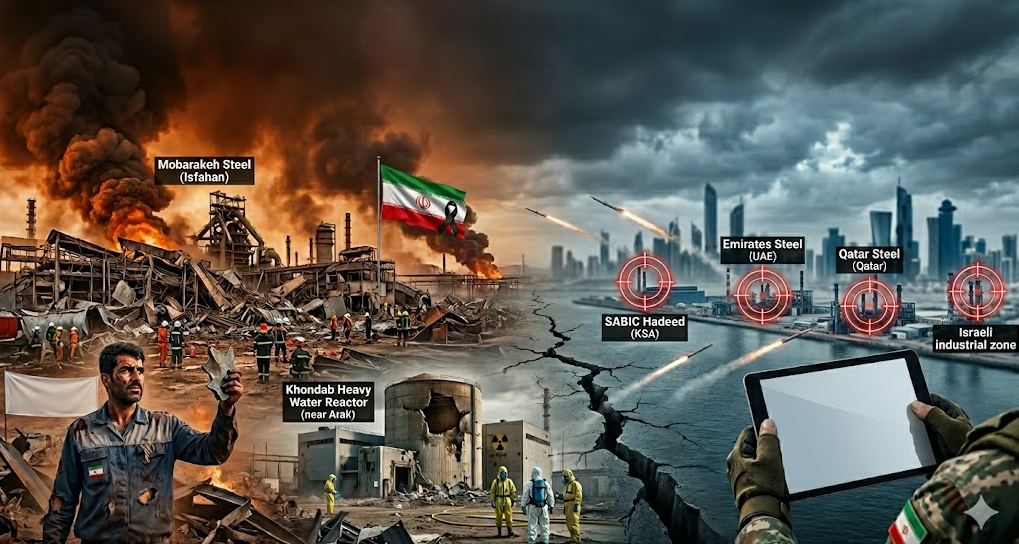 النقطة الأكثر خطورة في الرد الإيراني تمثلت في الكشف غير الرسمي عن “بنك أهداف” إقليمي يضم كبرى الشركات الصناعية في دول الجوار. فقد ألمحت مصادر إلى أن أي ضربة للصناعة الإيرانية ستقابل بضربات لمجمعات مثل “سابك حديد” في السعودية، و”إيميريتس ستيل” في الإمارات، و”قطر ستيل” في قطر، بالإضافة إلى مجمعات في الكويت والبحرين وإسرائيل.