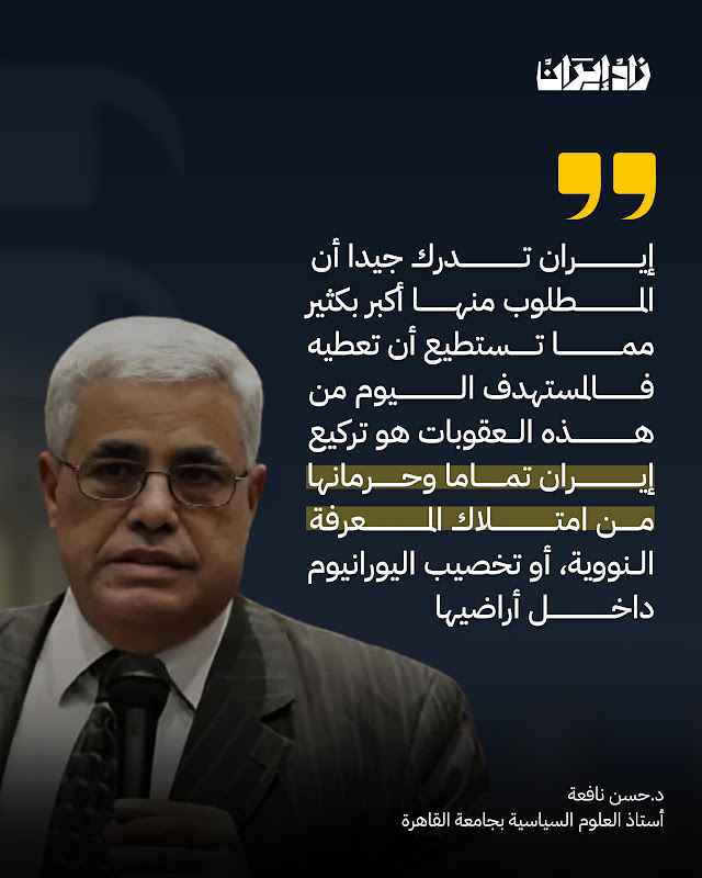 في حوار شامل مع “زاد إيران”، يقدم الدكتور حسن نافعة، أستاذ العلوم السياسية بجامعة القاهرة، تحليلا سياسيا عميقا للتطورات الأخيرة المتعلقة بالبرنامج النووي الإيراني، بعد عودة فرض العقوبات الأممية وإعادة تفعيل آلية الزناد في 28 سبتمبر/أيلول 2025، يركز الحوار على جوانب دبلوماسية واقتصادية وإقليمية، مع التركيز على دور الدول الكبرى والإقليمية؛ وما إذا كانت هذه الخطوة تمثل نهاية حقيقية للدبلوماسية مع طهران بشأن “الاتفاق النووي” أم أنها مجرد ضغط تكتيكي يمكن أن يؤدي إلى مفاوضات جديدة، وكيف يمكن أن يتأثر ذلك بمواقف روسيا والصين في مجلس الأمن واحتمالات حدوث أي مواجهات عسكرية قريبا أم لا؟ فإلى نص الحوار..