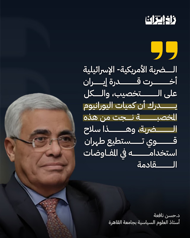 هذه الضربة -وفقا لـ د.نافعة- أخرت قدرة إيران على التخصيب، لكن أظن أن الكل يدرك الآن أن كميات اليورانيوم المخصبة نجت من هذه الضربة الجوية، وبالتالي وهذه نقطة مهمة جدا لدى إيران، وسلاح قوي تستطيع طهران استخدامه في المفاوضات التي جرت والتي لا تزال جارية في واقع الأمر.